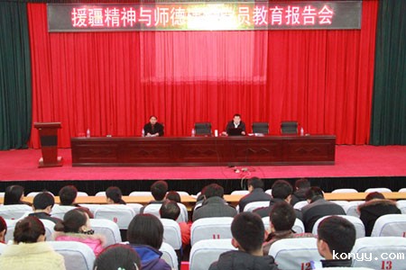 2月21日下午,优米官方版合集大全在执中楼报告厅召开了援疆精神与师德建设党员教育报告会,学校邀请九中援疆干部王幸福副校长为全体党员和学生入党积极分子作了一场《肩负国家责任 不辱历史使命》的援疆工作专题报告。