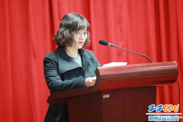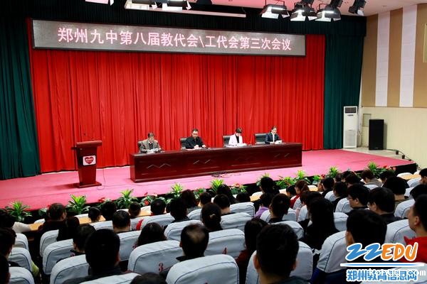张莹校长作了《在传承创新中,孕育新理想,再踏新征程》学校工作报告,在报告中,张莹总结回顾了一年来学校各项工作所取得的各项成绩。其中包括完善规章制度,优化管理体系;提高专业素养,打造高品质团队;坚持立德树人,推进德育工作全方位开展;强化目标建设,全面提高教育教学质量;夯实教育科研,实现专家型教师转变;凝练特色内涵,全面提升办学品质;保障教职工权益,搭建温馨和谐家园等七个方面的内容。并进一步提出,在新的一年,学校将继续做好顶层设计,“抓规划、抓方向,抓质量、抓教研,抓资源、抓配置”;“全面提升质量,全面提高分数”;聚焦师生深层需求,奋发有为,同心同力,认真做好学校的各项工作,为实现九中的持续发展而不懈努力。